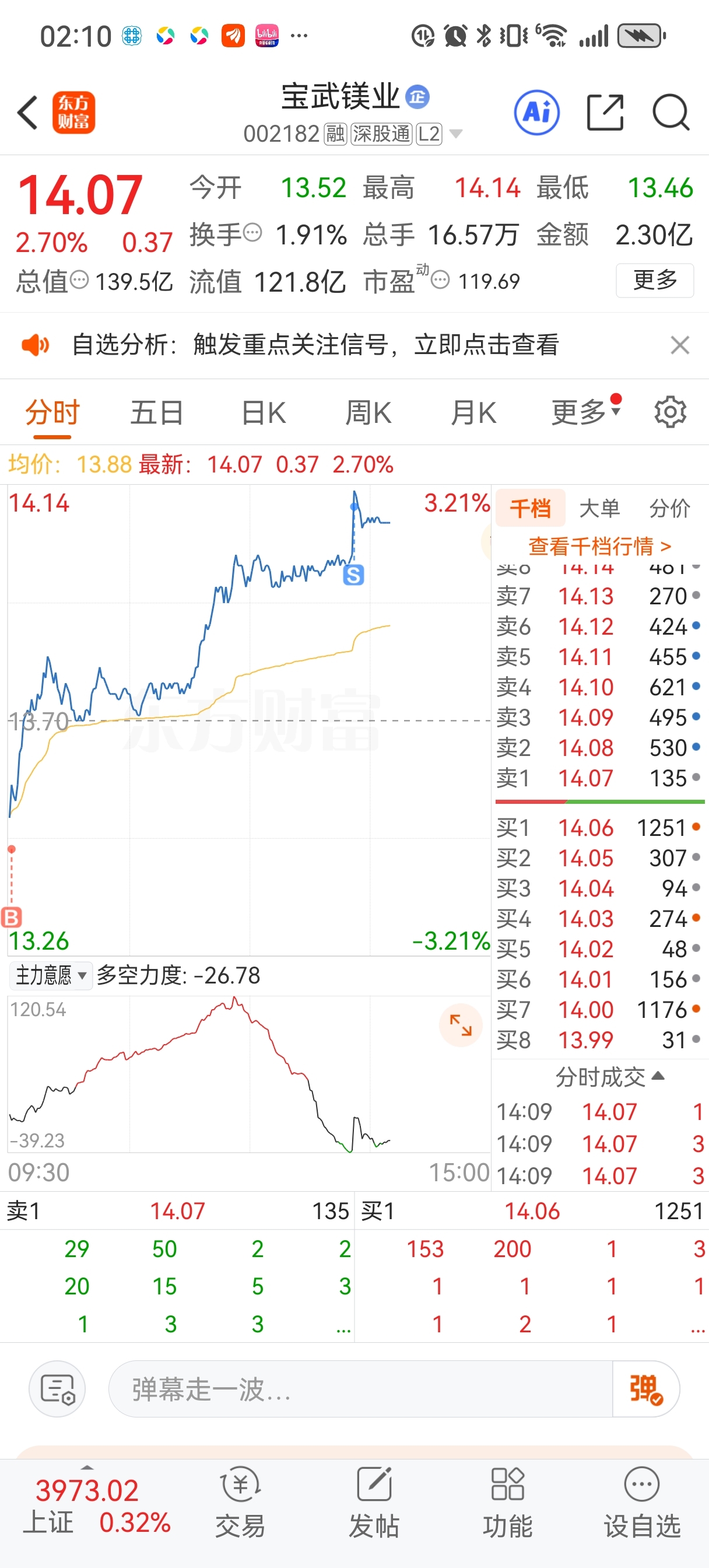 算到13.46的底,14.1的顶。总结:要戒贪,卖出价掌握的合理,买入价应该让到