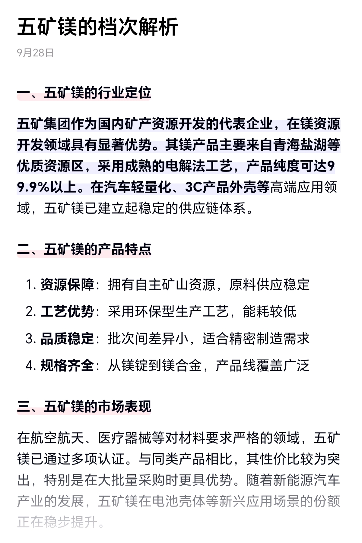 崆峒区已和中国五矿合作推进千吨级冶镁新技术中试平台,未来能直接为西部新能源车企供货,减少 “原料东运、成品西输” 的折腾。如今,崆峒区的镁基新材料基地已进入前期筹备,千吨级中试平台即将落地。