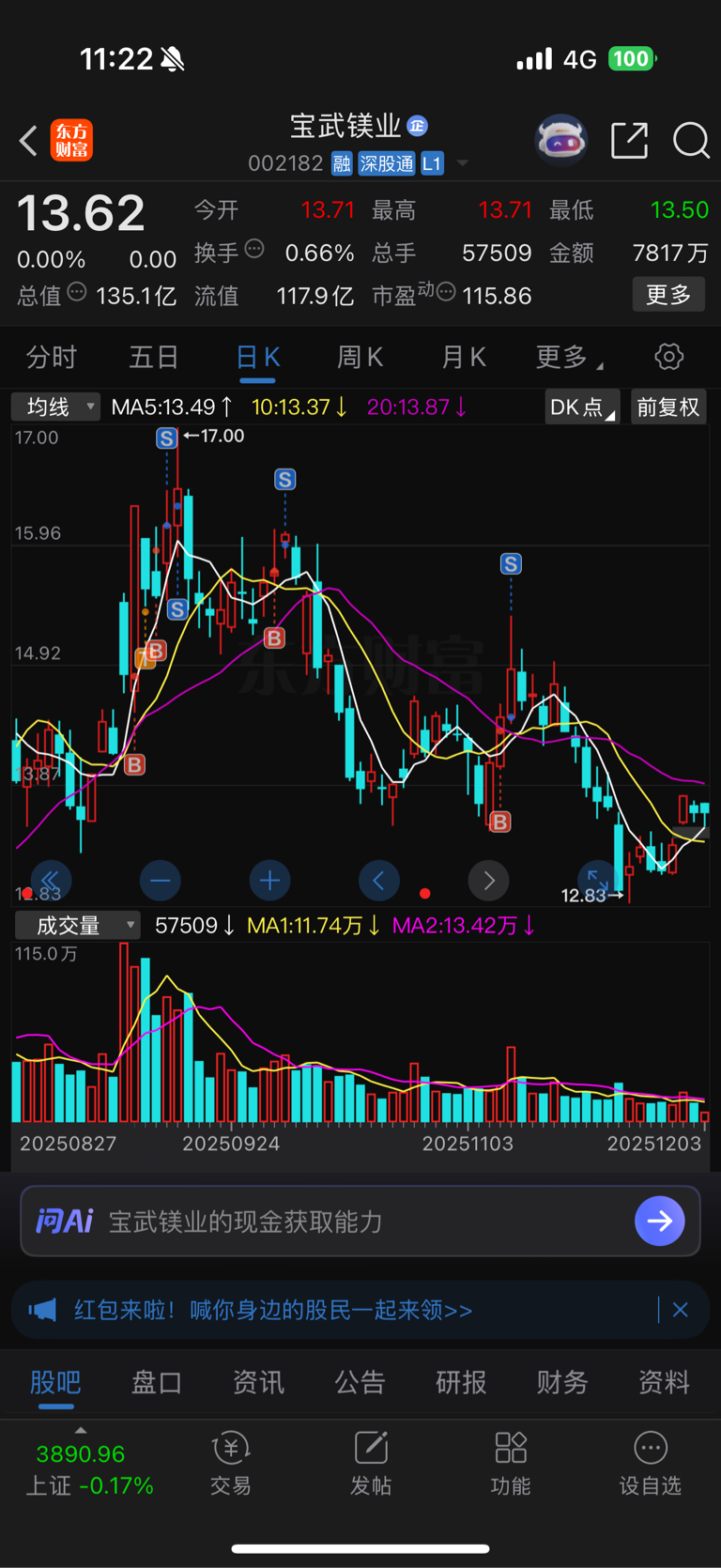 $宝武镁业(SZ002182)$ 不得不的承认 我在这个票上的运气真的不错 每次都没套到我