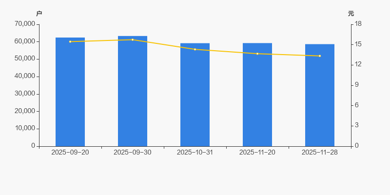 2025年9月20日至今,公司股东户数有所下降,区间跌幅为6.07%。2025年9月20日至2025年11月28日区间股价下降13.66%。