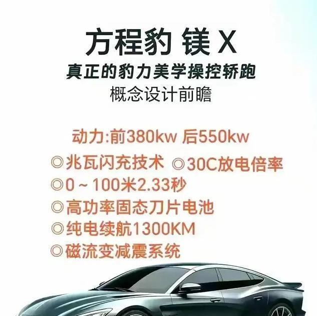 最近车圈被一条消息刷屏了:比亚迪方程豹要出一款叫“镁X”的轿跑,网传它要用上固态电池,百公里加速2秒多,续航能跑到1300公里。