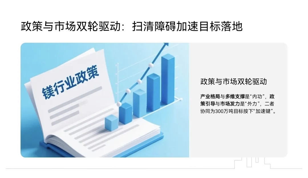 4. 战略定位实现质的飞跃:镁合金从“小金属”成功升级为“轻量化刚需战略金属”,更成为“减重即降碳”核心载体,成功跻身千亿级轻量化降碳材料市场,战略价值显著提升,为产业发展开辟全新空间。