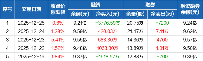 宝武镁业:融资净偿还3776.59万元,融资余额9.21亿元(12-25)