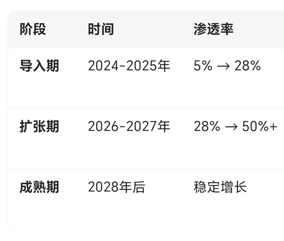 二、市场渗透率预测:从5%到50% 的爆发式增长
