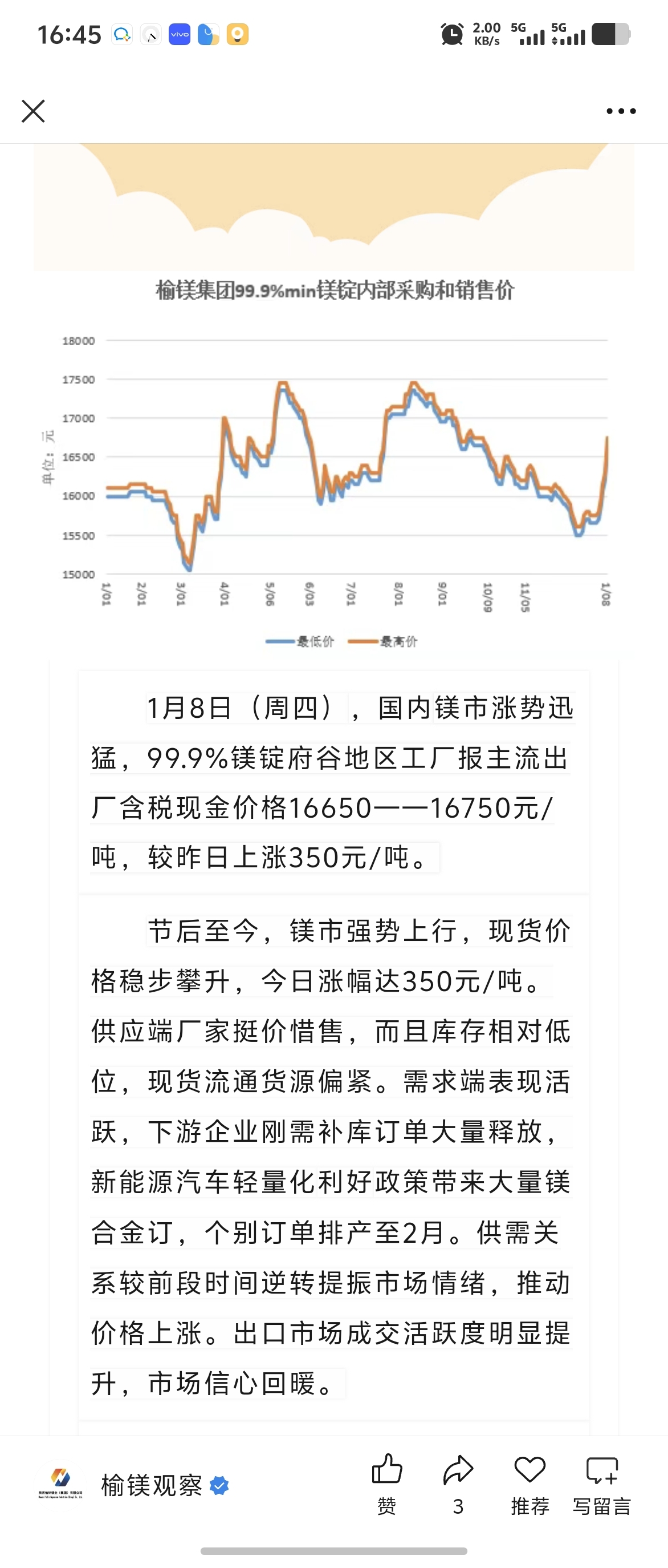 需求端订单爆发,排产到2月了,用不了多久就把今年的产能干完了,维持年底镁价三万的