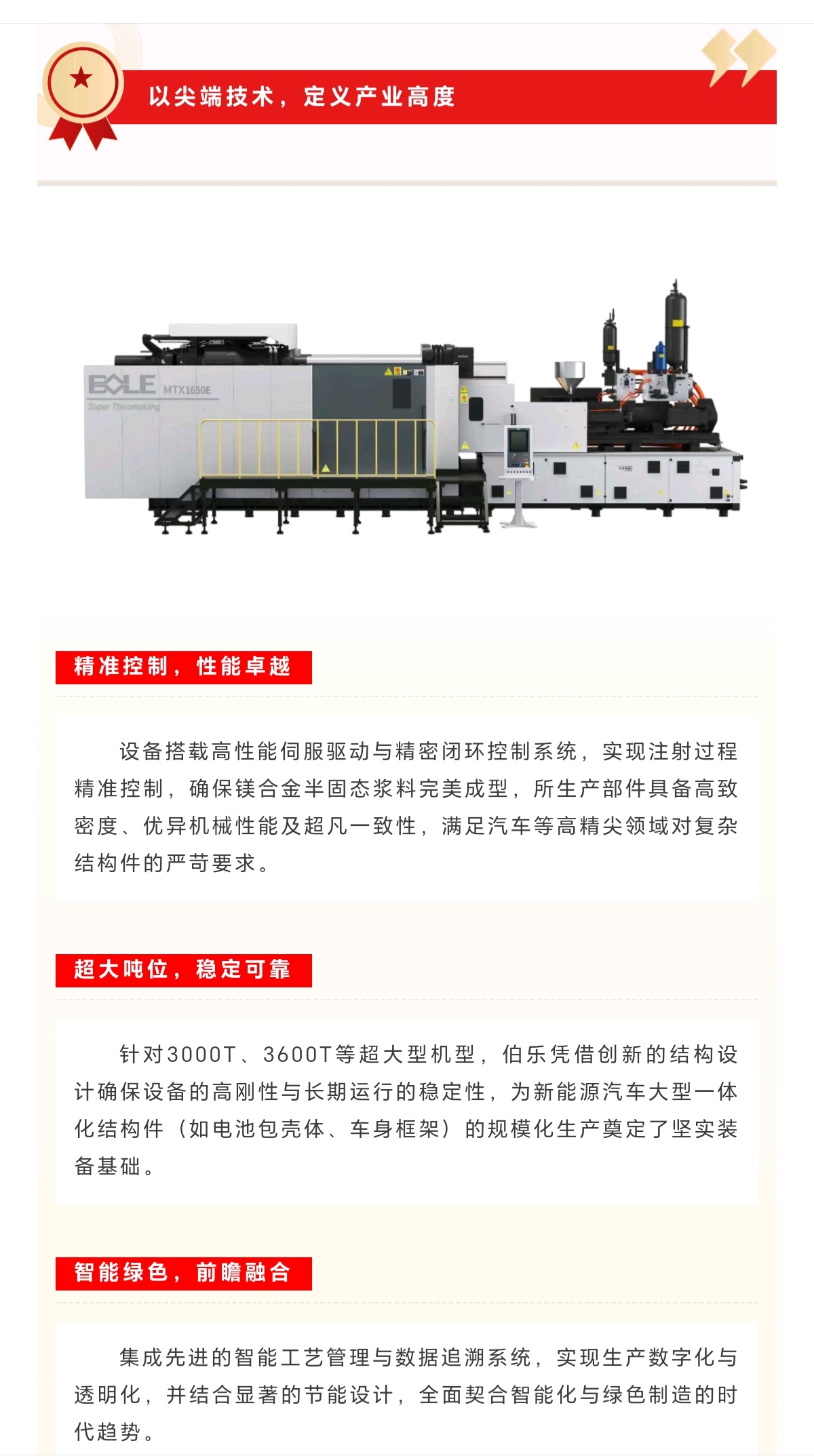近日,伯乐智能与安徽力恒动力机械有限公司正式达成重大战略合作,成功签署37台大型镁合金半固态注射成型机供应合同,设备涵盖850T、1650T、3000T及3600T等关键吨位。此次合作不仅是伯乐智能在高端成型装备市场的又一重大突破,更是其技术领先地位与市场领导力的强力印证,标志着公司在赋能制造业轻量化升级进程中树立了崭新的行业标杆。