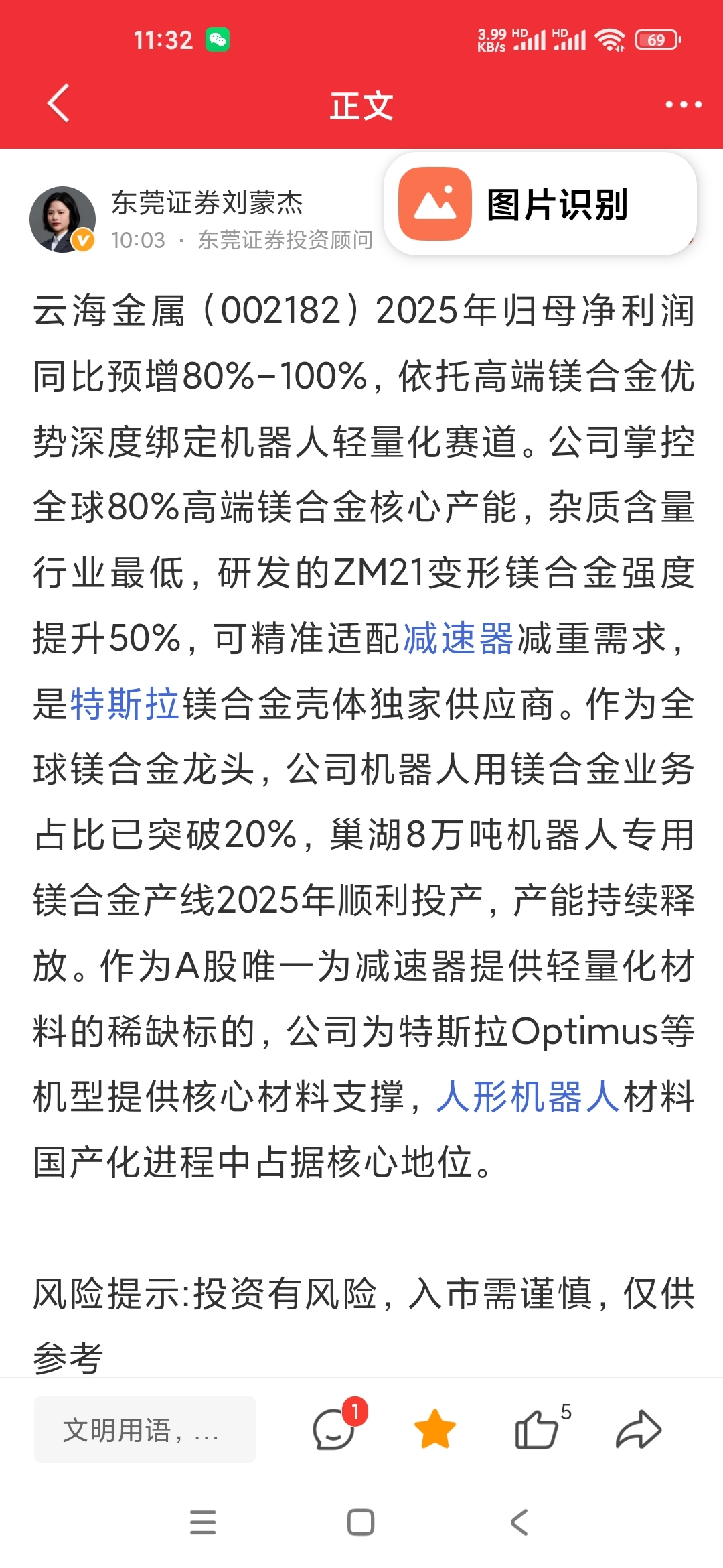 $宝武镁业(SZ002182)$ 预告有出了吗?我是查不到。