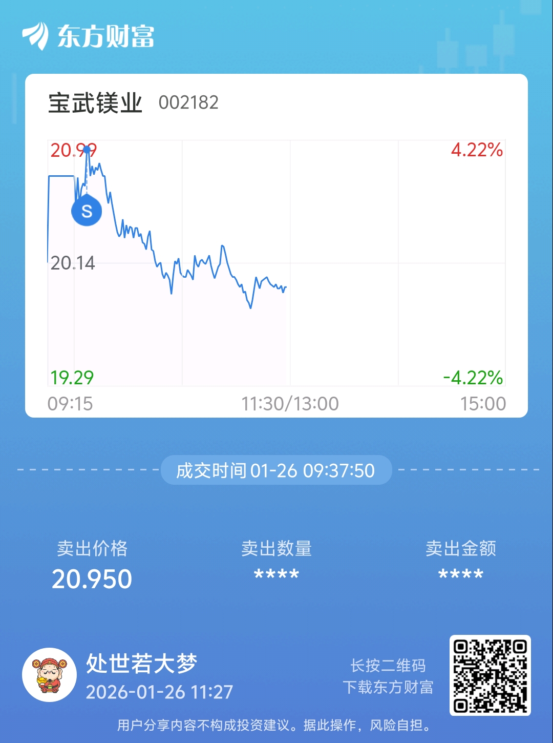 温馨提示: 1.根据《证券法》规定,禁止编造、传播虚假信息或者误导性信息,扰乱证券市场;2.用户在本社区发表的所有资料、言论等仅代表个人观点,与本网站立场无关,不对您构成任何投资建议。用户应基于自己的独立判断,自行决定证券投资并承担相应风险。《东方财富社区管理规定》