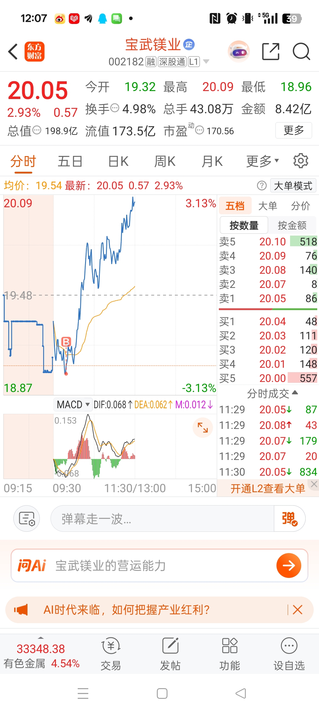 $宝武镁业(SZ002182)$ 明天必定破前高,主力收集筹码3天不是为了今天涨两个点,3个点的,相信我