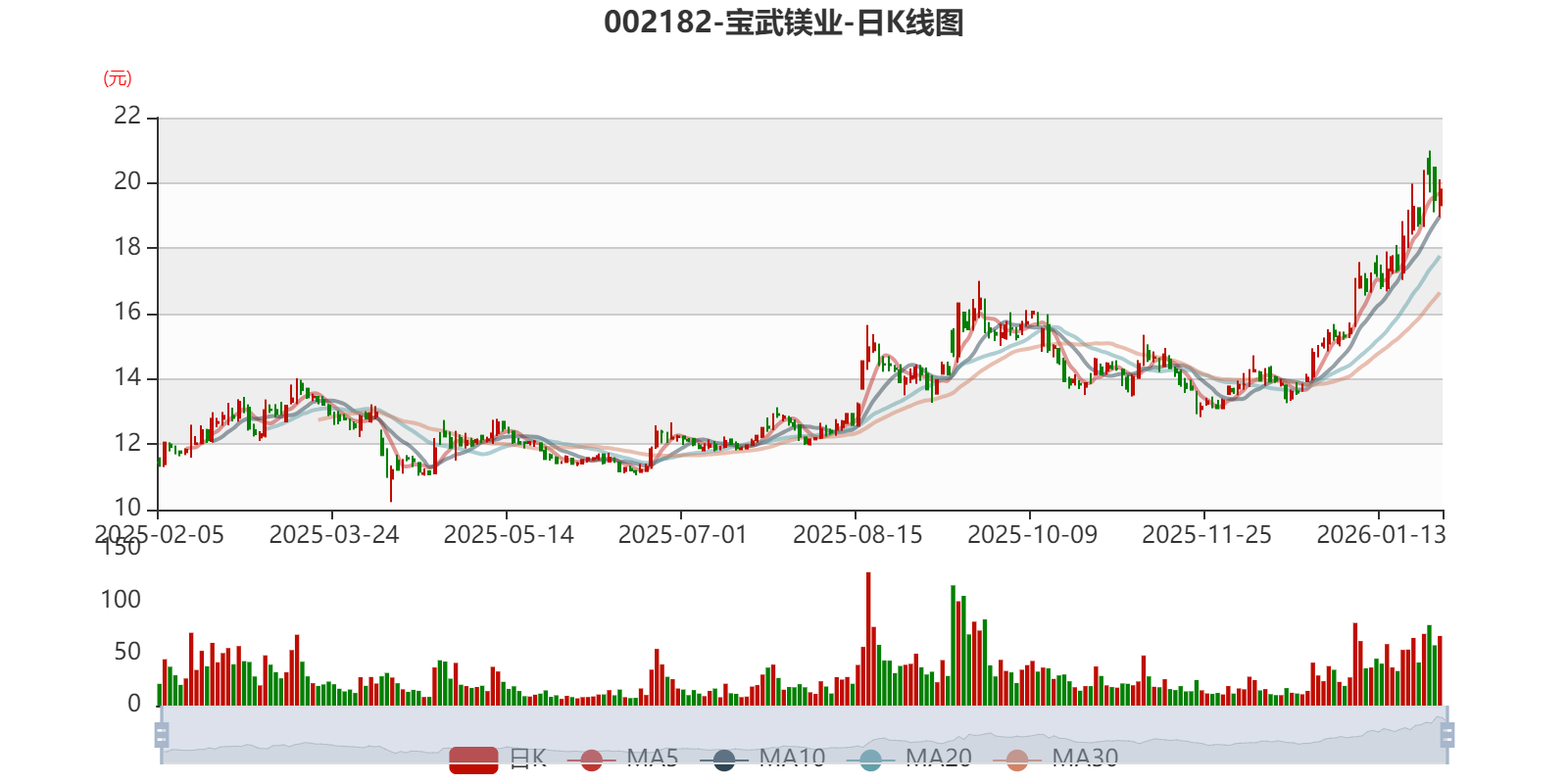 据公告,公司业绩变动原因为, 受镁价持续下行影响,本报告期公司镁材料业务盈利同比上年较大幅度下降;按谨慎性原则计提了部分资产减值准备;同时,公司联营公司安徽宝镁轻合金有限公司新建项目处于投产爬坡阶段,产量低、成本高,叠加镁价处于低位,影响公司投资收益同比下降。