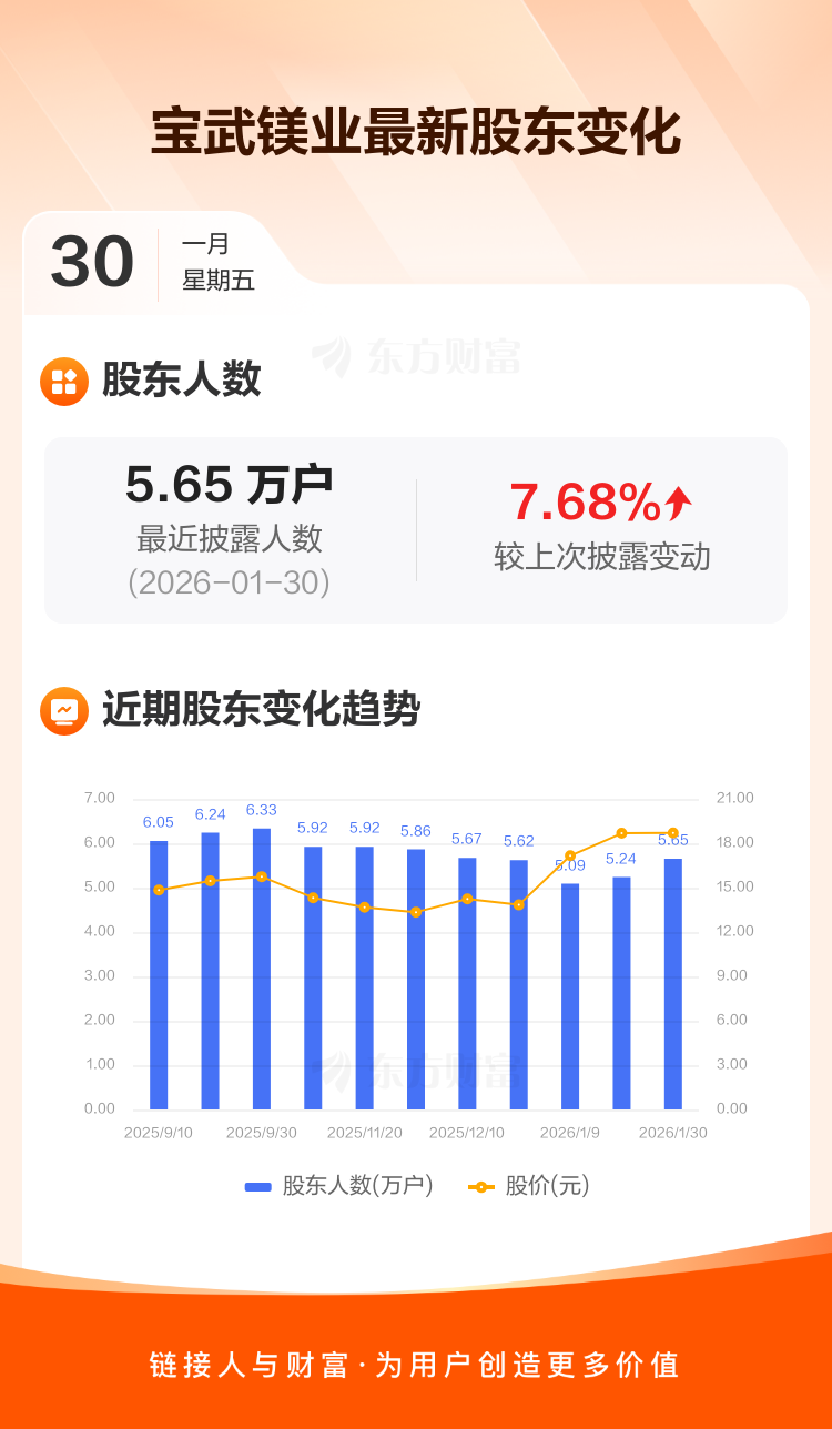 宝武镁业:截至1月30日最新股东户数5.65万户,较上期增加7.68%