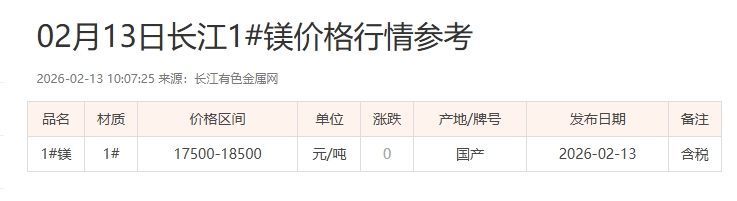 02月13日长江1#镁价格行情参考