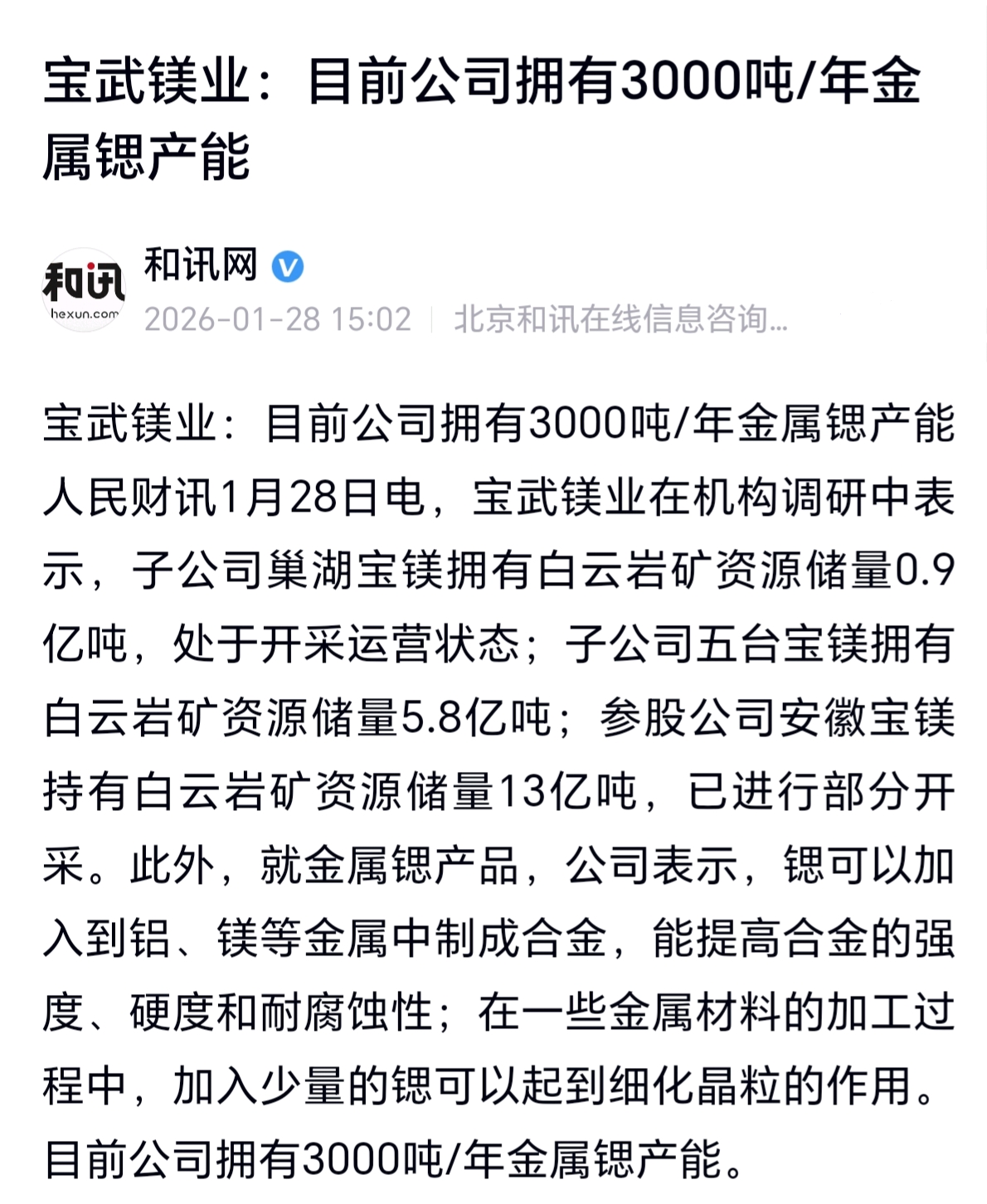 根据当前公开资料,宝武镁业是金属锶产能最大的企业。溧水地区发现了大型锶矿,伊朗天青石进口受战争影响。宝武集团是不是接下来要有什么动作?