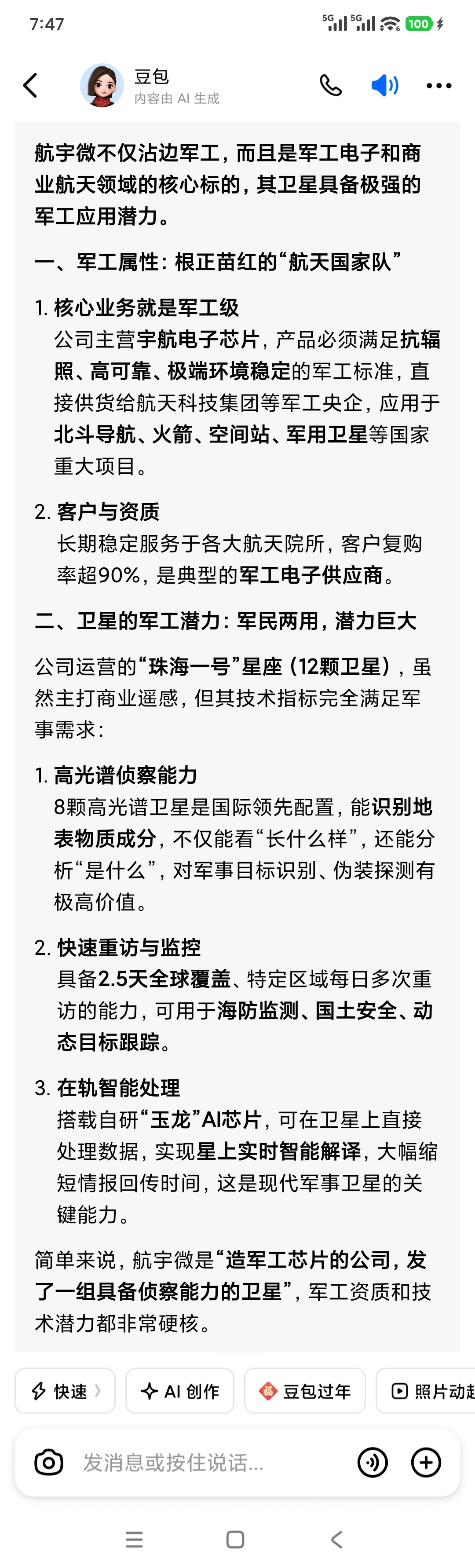 严重低估航宇微300053AI芯片(国内唯一太空在轨验证并量产)技术全面适配高超音速/战术/防空导弹,制导已批量供货三体计算星座(太空计算)、低空无人机(飞行器)导弹、航天科技、航天科工、登月、空间站、深空、火箭、太空挖矿机器人、中电科,已签和未来订单达数十亿(每颗星或飞行器无人机导弹必备制导AI芯片)。中国星链唯一太空算力英伟达-航宇微300053低轨卫星链战争的秘密武器。航宇微是低空和亚轨道飞行器(导弹同源)独家芯片供应商,为航天科工导弹体系提供间接配套;直接利好:航宇微玉龙芯片具有:26年600颗卫星建造产能+AI算力芯片精确导弹(或航天飞行器)制导+中国星链AI大脑(未来20万颗卫星标配,单颗200万,未来应收百亿以上)+反舰高光谱卫星遥感侦查军民2用(A股唯一1家)+卫星大数据AI业务闭环(全球唯一)-这就是最正宗的受益方向标的。