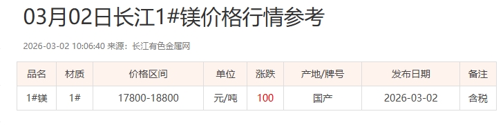 03月02日长江1#镁价格行情参考