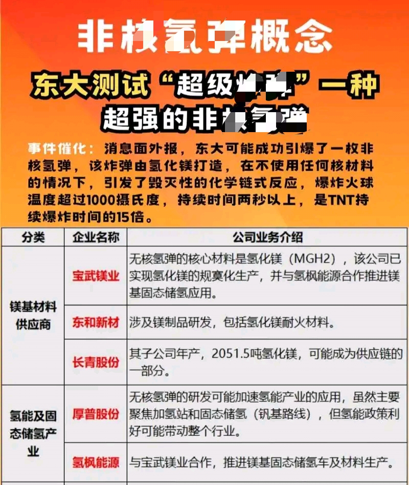 与“非核氢弹”概念相关的上市公司及业务