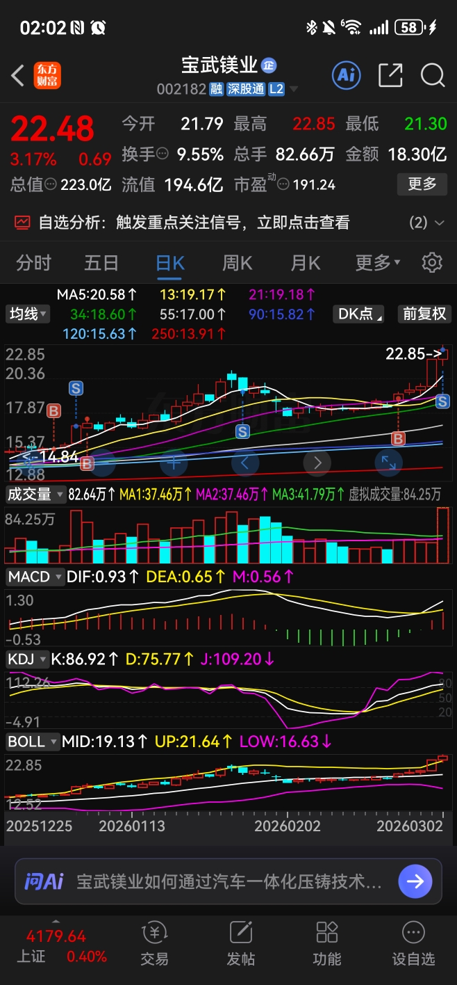 $宝武镁业(SZ002182)$ 今日卖出部分,等机会低吸。