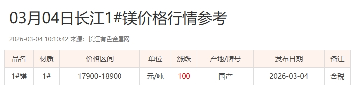 03月04日长江1#镁价格行情参考