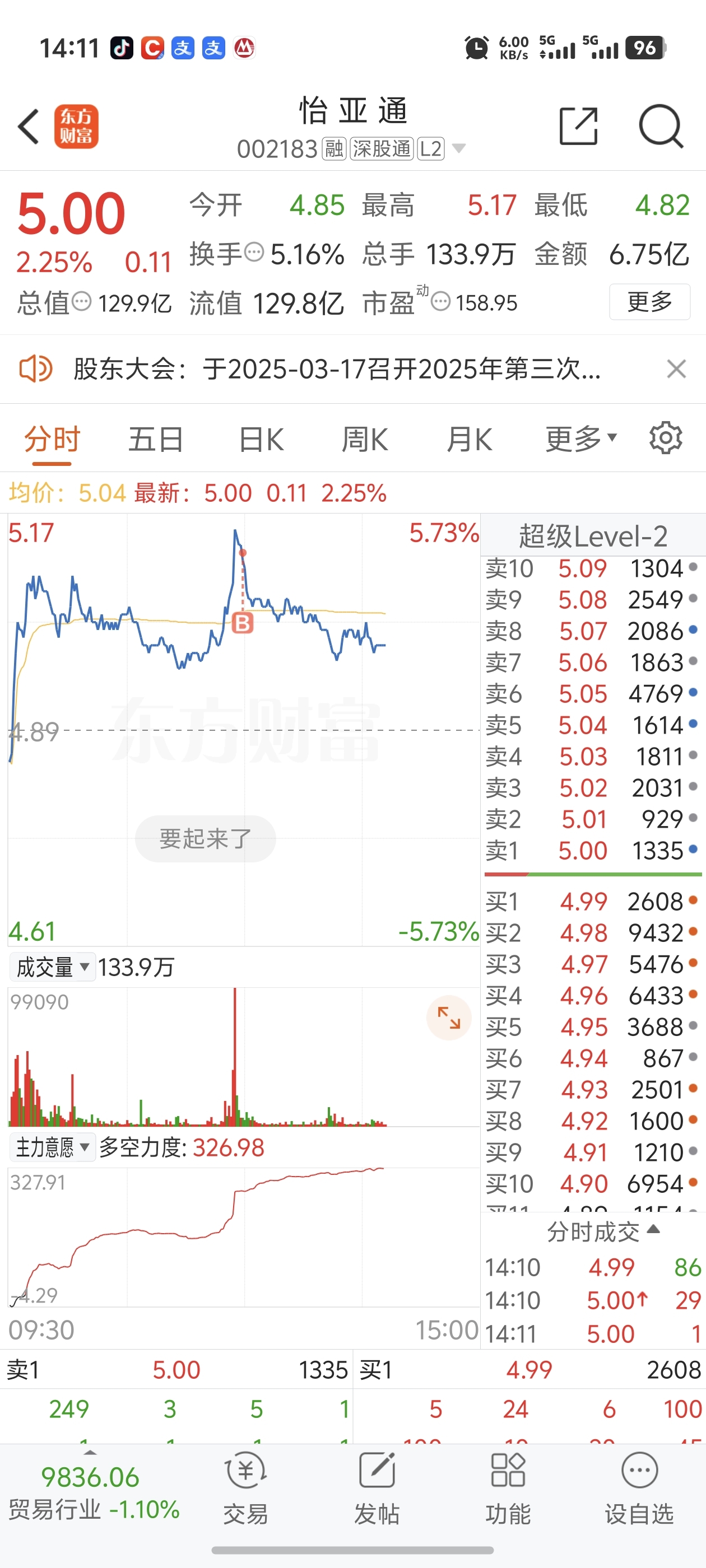 $怡 亚 通(SZ002183)$ 没明白冲下5.17是何意思,再次试盘????!!!!妈的真凉快