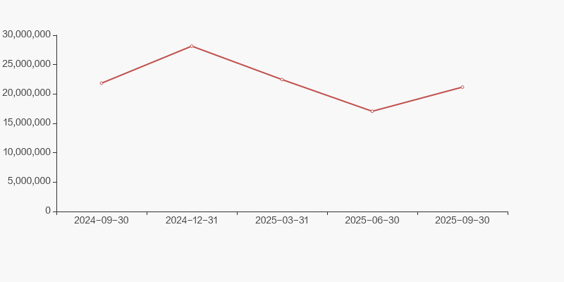 截至2025年9月30日,公司最新流通股本为25.97亿股。户均持有流通股数量由上期的1.98万股下降至1.73万股,户均流通市值9.11万元。