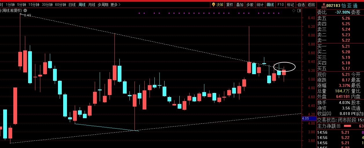 $怡 亚 通(SZ002183)$ 这里走突破的话到8块也不过分吧!不突破的话就是shi…