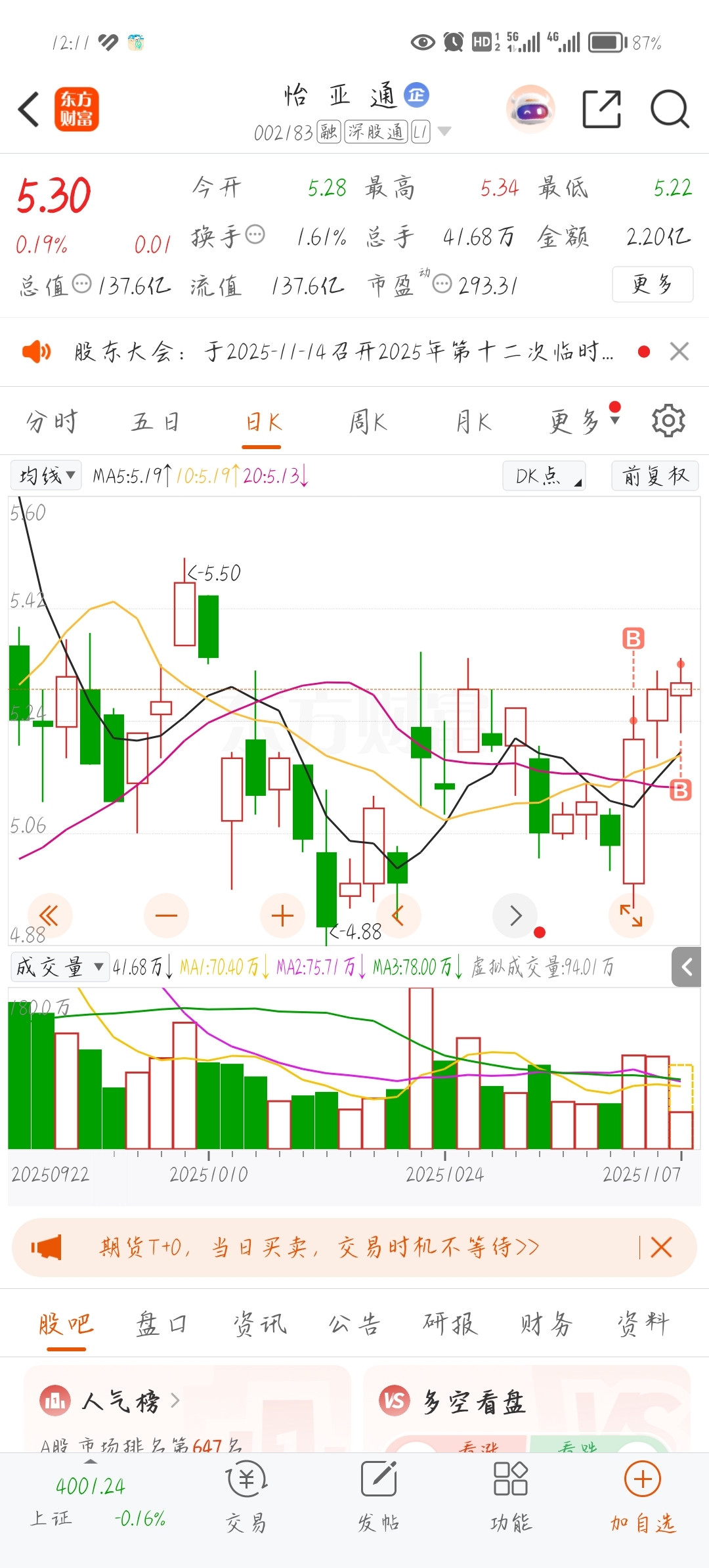 $怡 亚 通(SZ002183)$ 看我厉害不?每次买,都能把压下来!