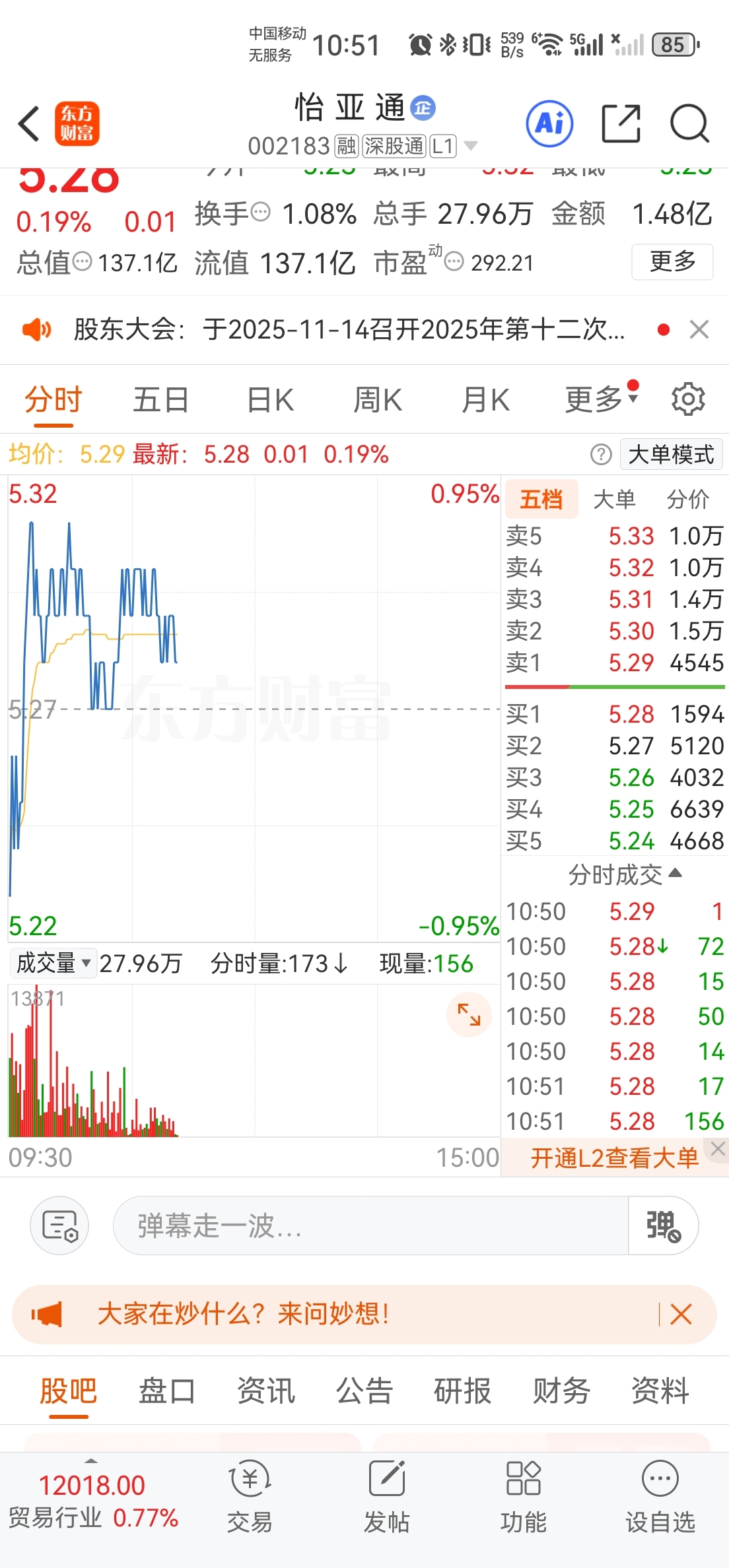$怡 亚 通(SZ002183)$ 大家都看看上面挂单这么多,怎么涨?