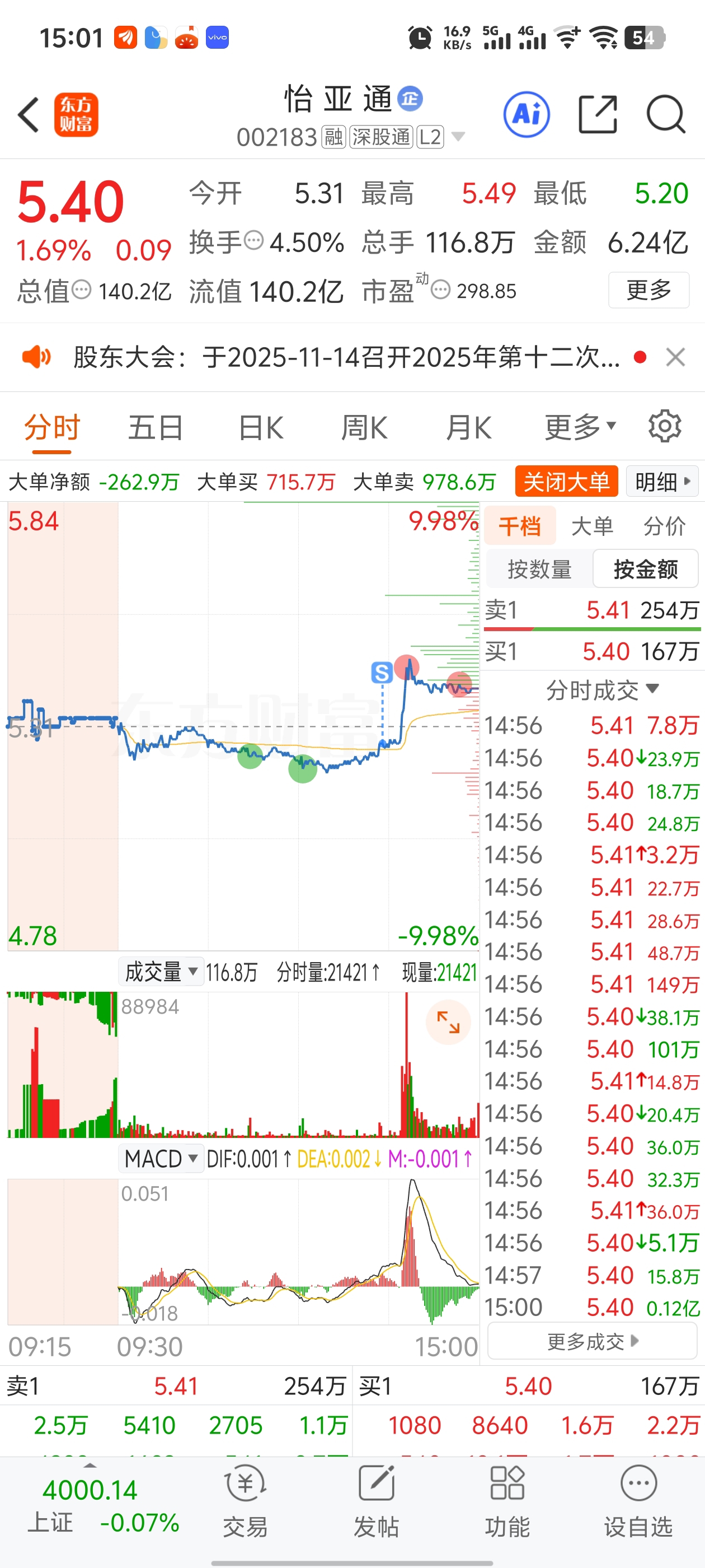 $怡 亚 通(SZ002183)$ 主力,你让我没有爱啊