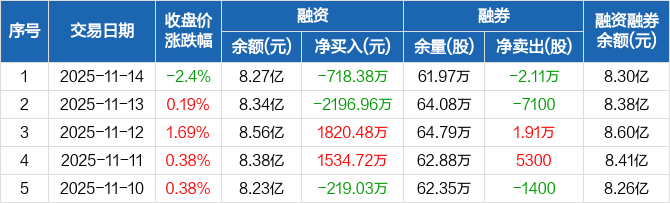 怡亚通:融资净偿还718.38万元,融资余额8.27亿元(11-14)