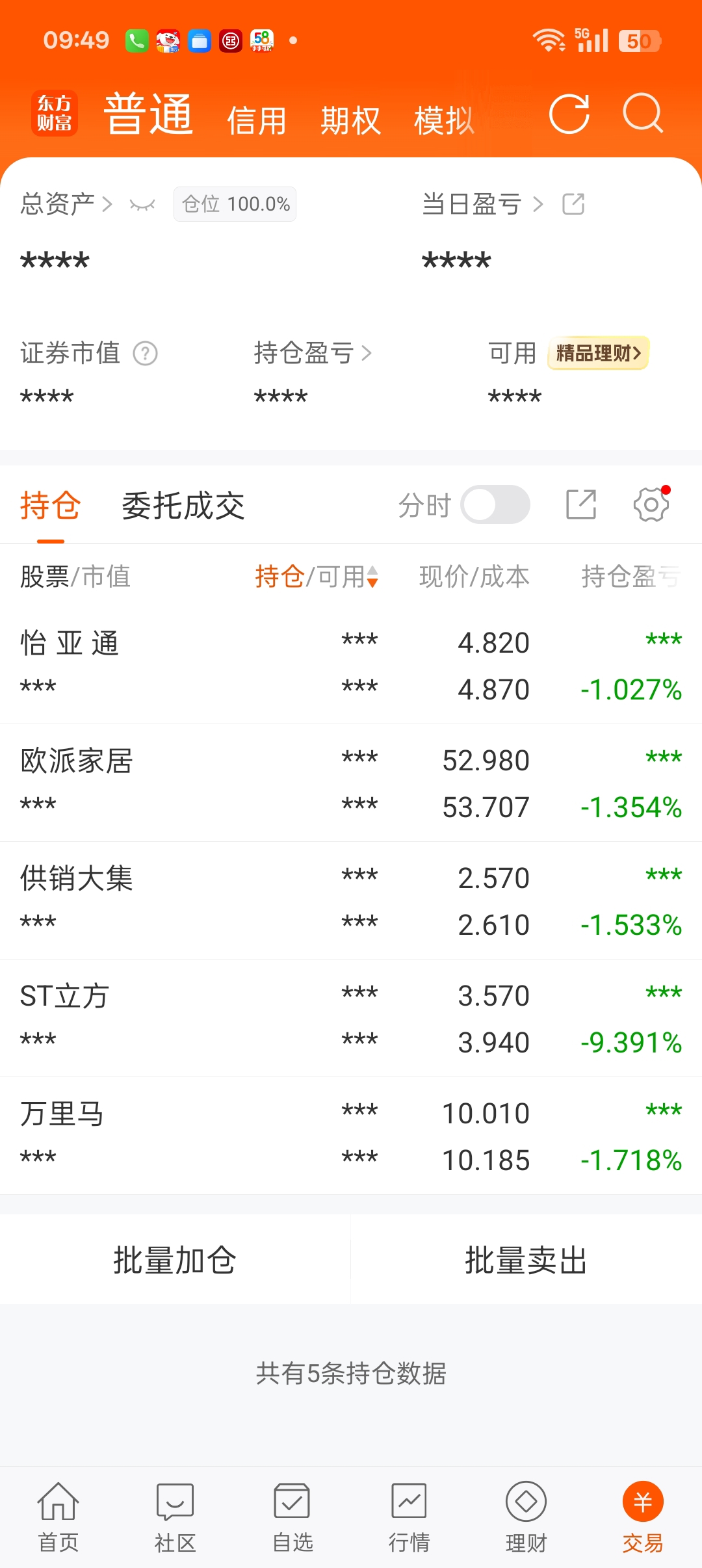 操没一个红的$怡 亚 通(SZ002183)$ $ST立方(SZ300344)$ $万里马(SZ300591)$ 欧派家居供销大集,全绿