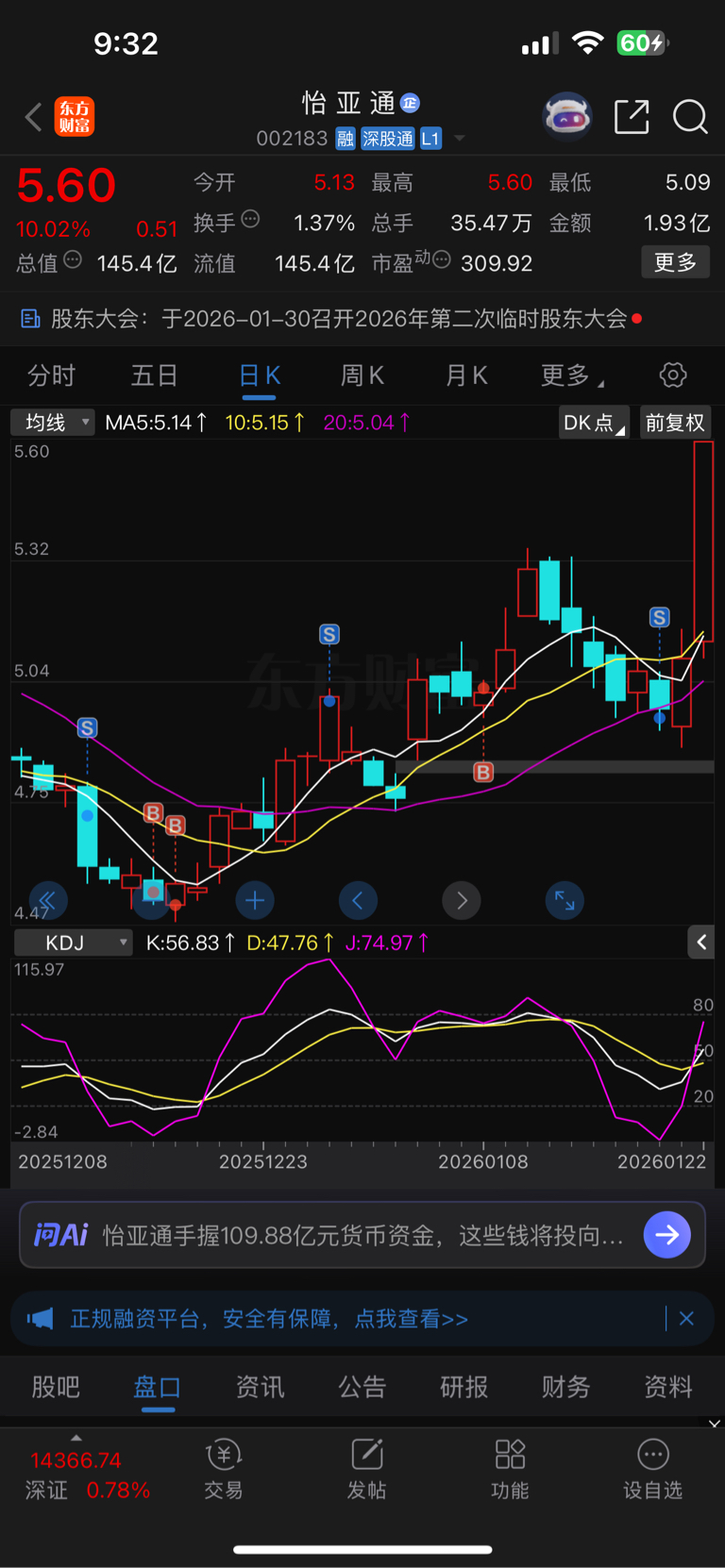 $怡 亚 通(SZ002183)$ 后悔阿,大腿拍肿了