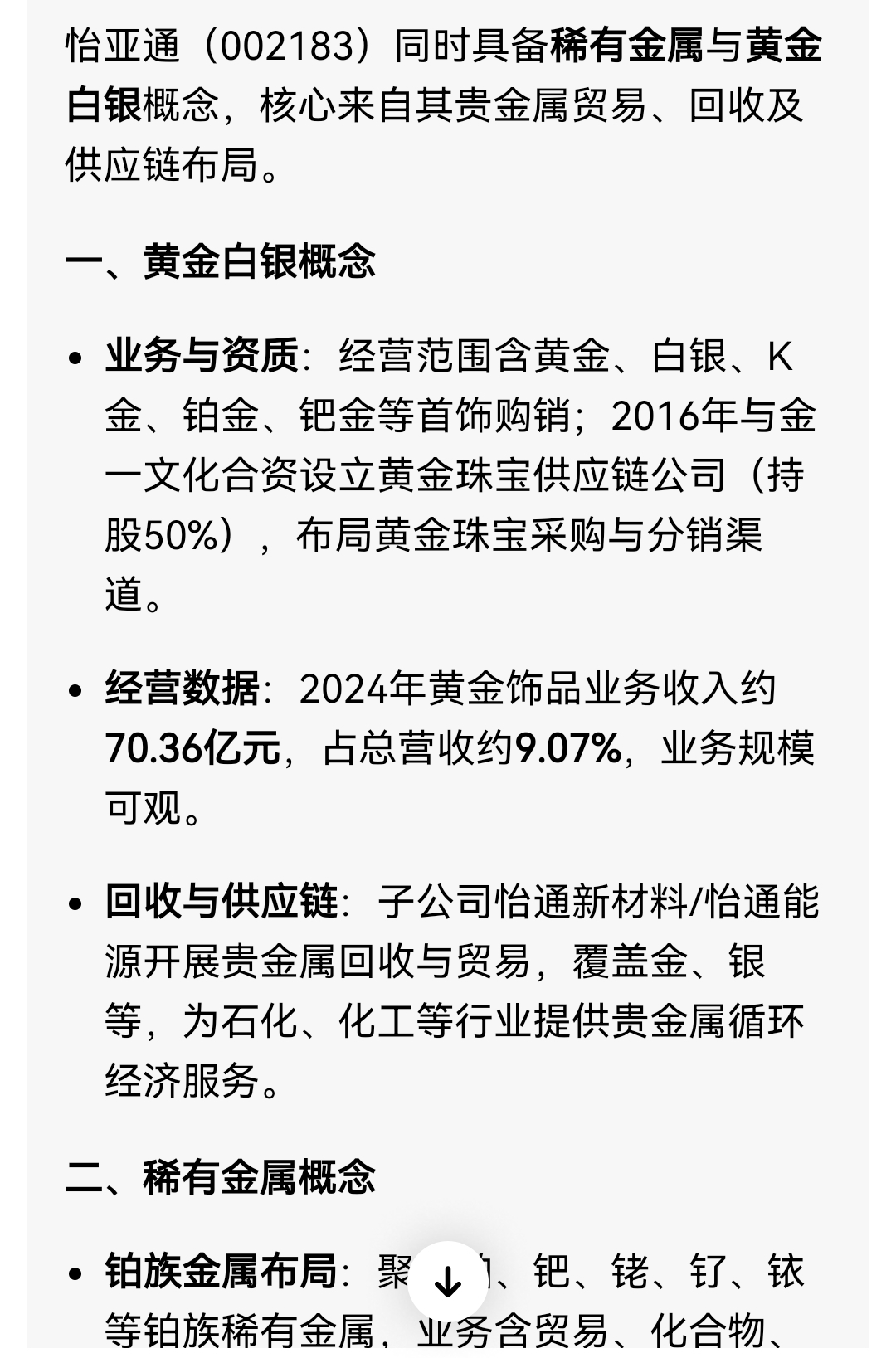 $怡 亚 通(SZ002183)$ 确实是万金油啊,商业航天,芯片半导体,零售消费,机器人,黄金白银,稀有金属,锂矿,光伏,还有ai应用,还有医药概念