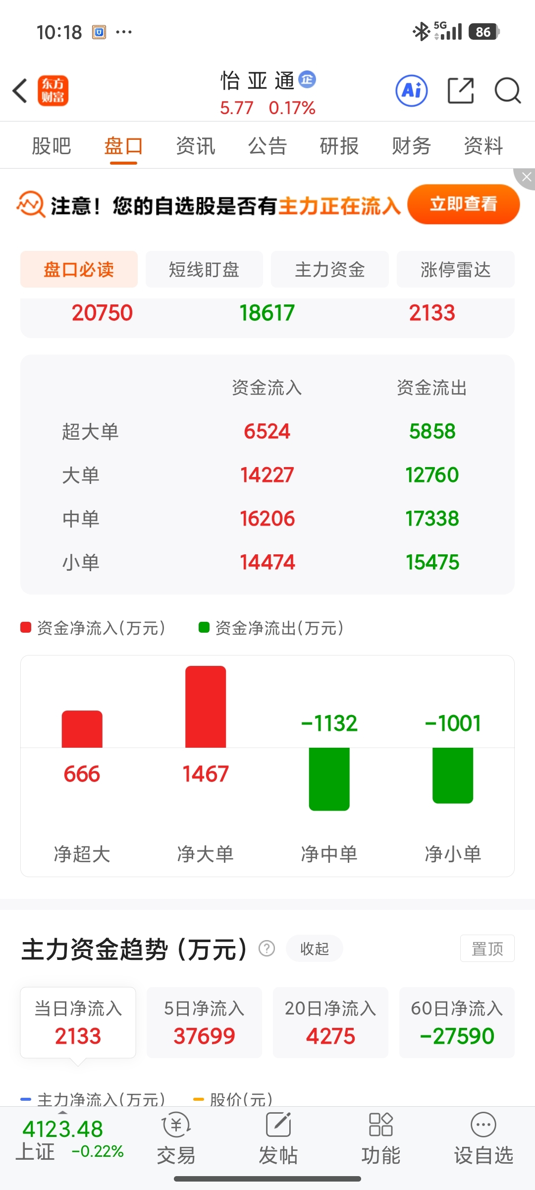 $怡 亚 通(SZ002183)$ 主力飘红,主力顶顶顶