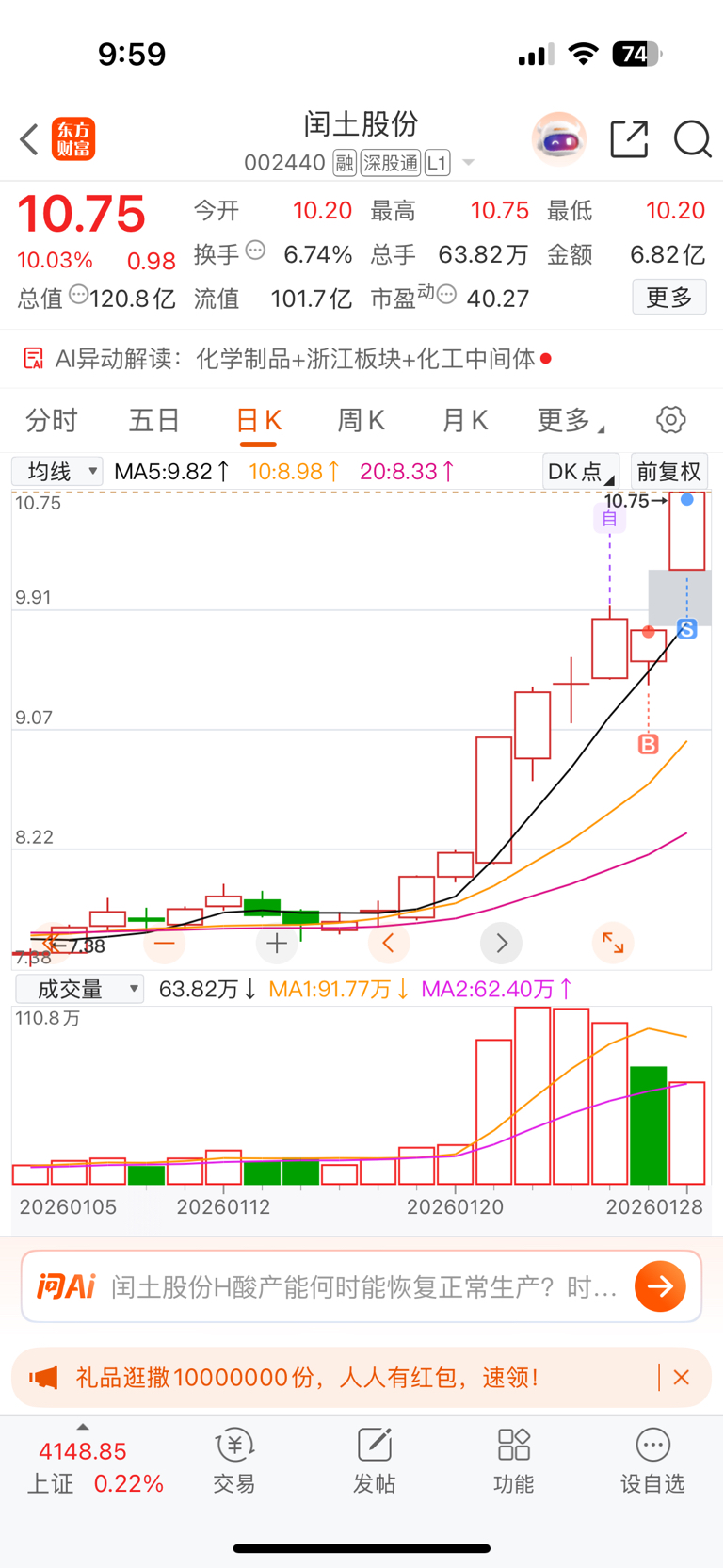 卖飞闰土股份来给你撑场子,加油啊,你也是有芯片储存的啊