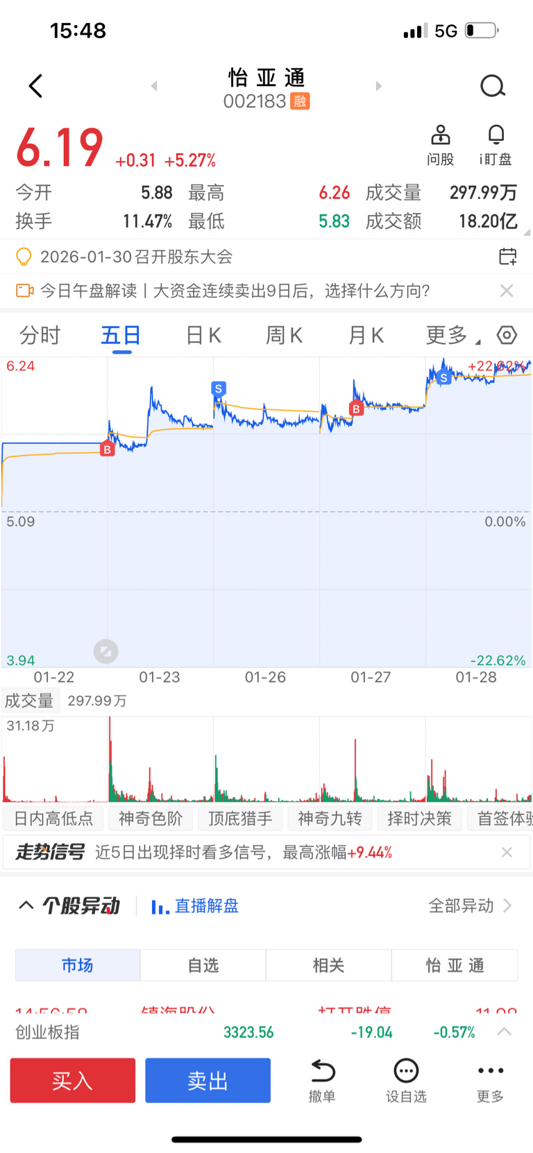 $怡 亚 通(SZ002183)$ 忍不住卖了。明天可以涨停了