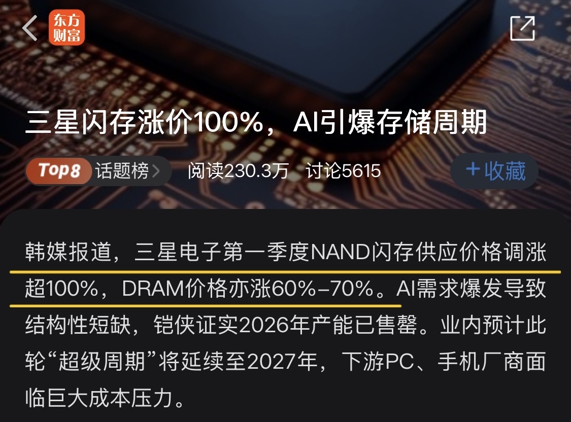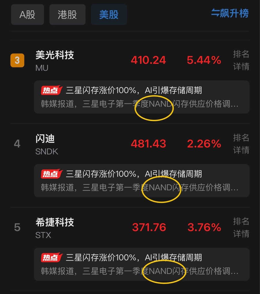美股存储芯片三巨头为什么股价连涨半年以上,就是因韩国三星闪存NAND价格上调涨超