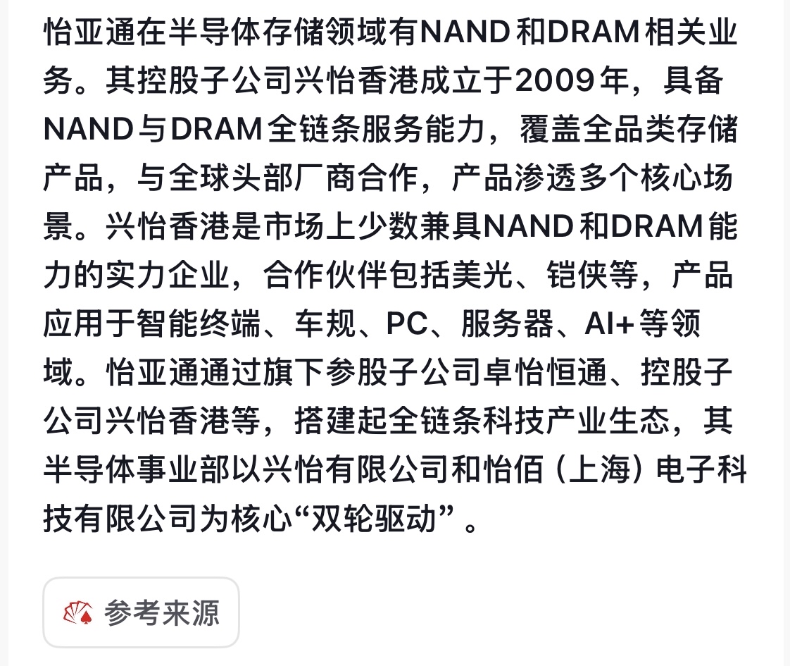 A股最正宗不蹭概念拥有NAND和DRAM两种闪存芯片厂商的公司,只有怡亚通独此一