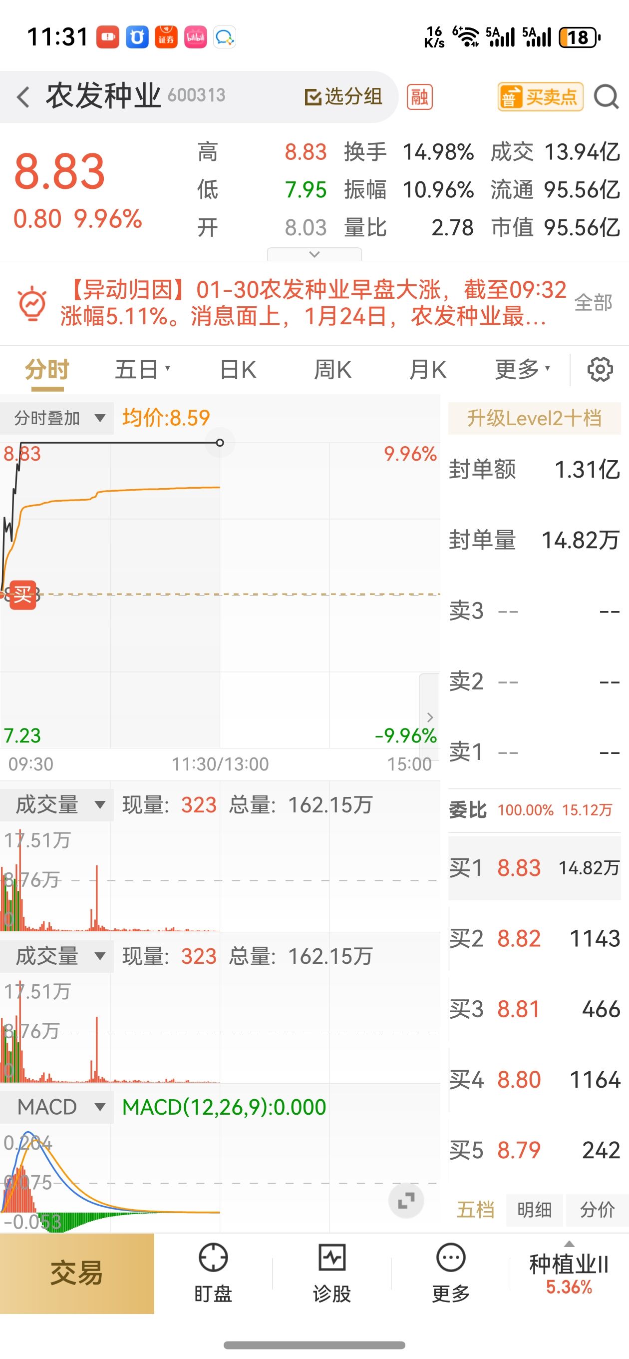 $怡 亚 通(SZ002183)$昨天说了感觉是洗盘,但碍于自己的纪律,还有大盘的不稳,尾盘没有收回5日线就减仓了。本想着今天低开或者回踩十日线再补回来,结果直接高开封板,没给机会。还好卖出的资金开盘买入农发种业,也是一个涨停,弥补了遗憾。怡亚通封板后,由于大盘拉跨,出现了持续的抛压,那么开板是90%的概率了。但是封板后看到很多万手大单都是实打实的成交,所以这个开板肯定不是主力主动行为,可能是遇到了对手盘,或者是看到大盘持续拉跨,自己减点仓位,顺带释放一下抛压。所以基于这个考虑,一直没有跑,坚定自己的持股理念:趋势还在就继续持有,哪怕利润回吐部分。果然开板后,股价一直稳在了开盘价上方,出现横盘震荡的走势。如果是主力出货,大盘这个鬼样子,绝对杀到深水区,甚至跌停都有可能。那么在开盘价上方横盘,只要接近开盘价就拉回,这肯定是主力行为,说明主力还在持续增加仓位,或者是把自己砸板的筹码买回来。只要主力还在,那么操作起来就很简单了,下午只要继续横盘,那么今天是个不错的加仓点。如果下午回封,那么全仓打板。