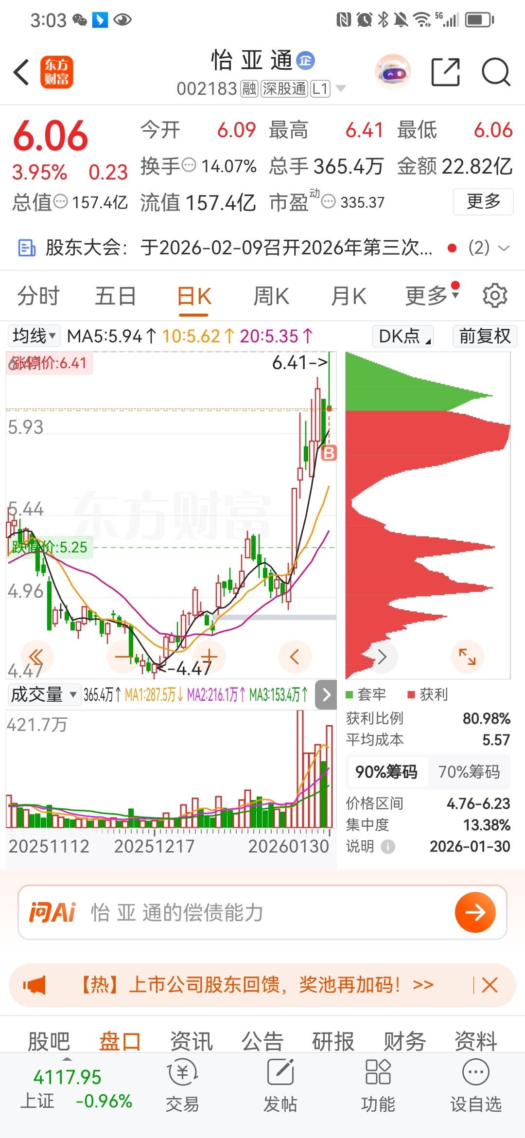 $怡 亚 通(SZ002183)$ 赌天意避因果,下周一涨停