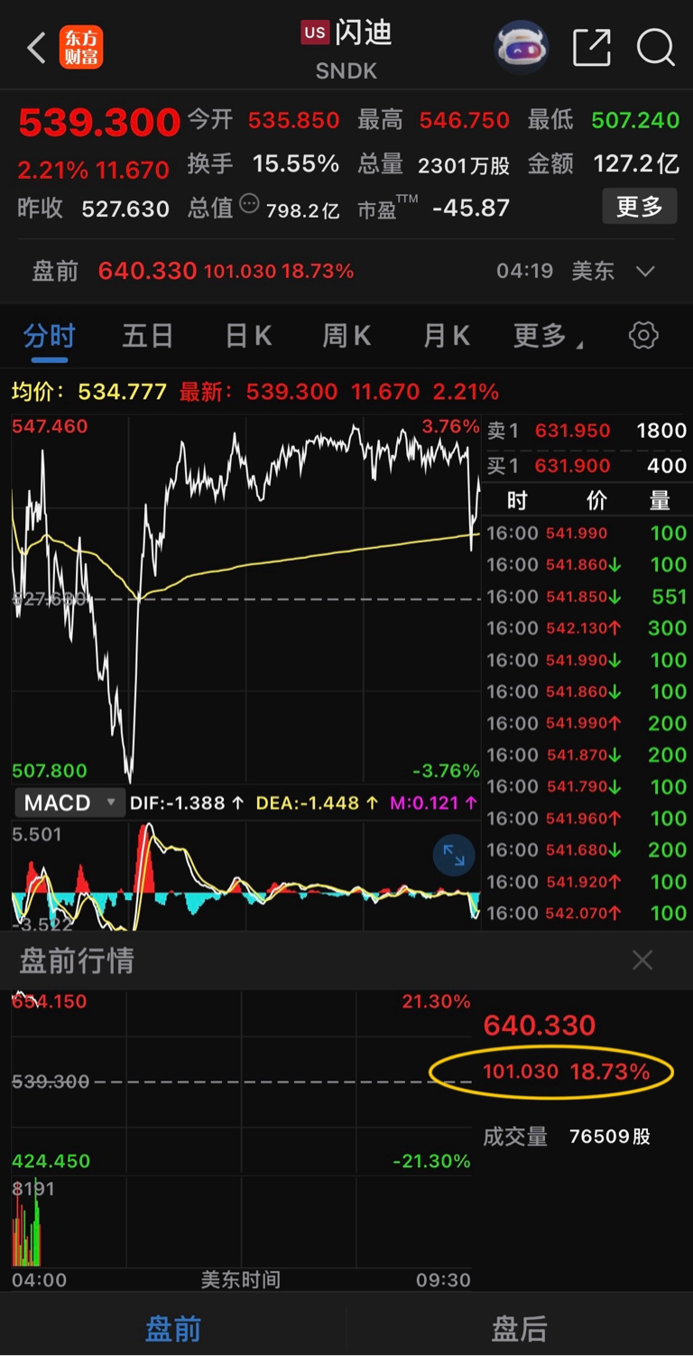 存储芯片闪迪美股盘前已经大涨18.73%了,下周一怡亚通能不能一字板了……