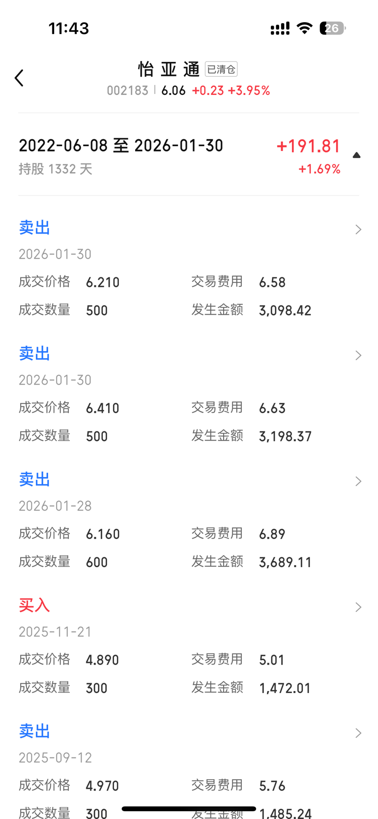 $怡 亚 通(SZ002183)$ 套了四年,解放!感谢主力!