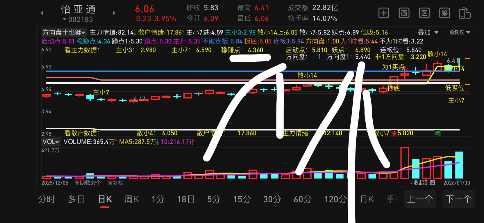 怡亚“方向盘”5.44(主升底),亿晶“方向盘”3.33(主升底),个人记录