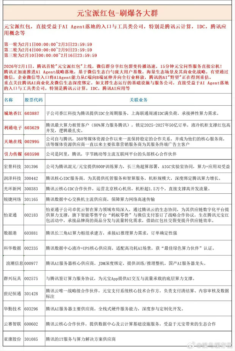 腾讯元宝相关概念股!元宝登顶AppStore免费榜!10亿元红包驱动社交裂变,大