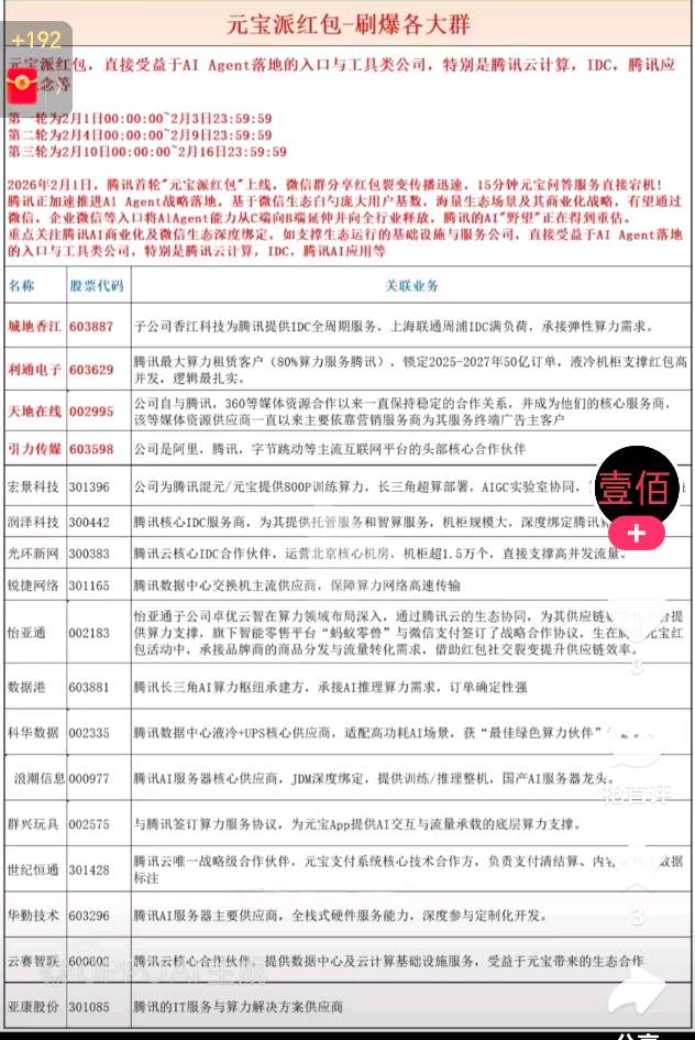 $怡 亚 通(SZ002183)$ 怡亚通子公司卓优云智在算力领域布局深入,通过腾讯云的生态协同,为其供应链数字化平台提供算力支撑,旗下智能零售平台"蚂蚁零兽"与微信支付签订了战略合作协议,生在腾讯元宝红包活动中,承接品牌商的商品分发与流量转化需求,借助红包社交裂变提升供应链效率。$利欧股份(SZ002131)$ $特变电工(SH600089)$ #复盘记录# #炒股日记# #实盘记录#