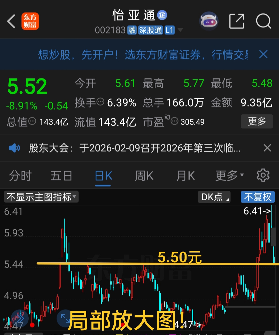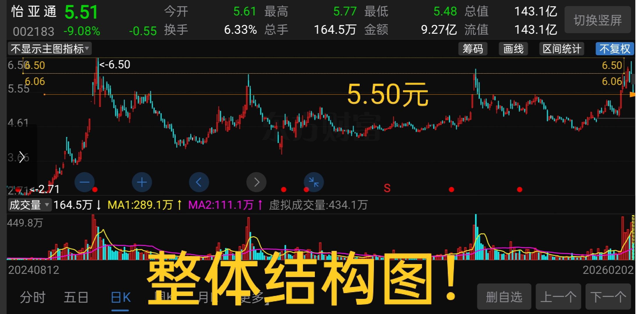 怡亚通趋势跟踪观察——上周冲击箱体上方压力区间,上有抛压,又有大量跟风盘(特别是涨停板上打板资金太多),今天回踩5.50元左右的区域,看后续是否能在这个区域形成二买确认,如果成功确认,上升趋势就没有反转,否则就是上升趋势结束并反转!