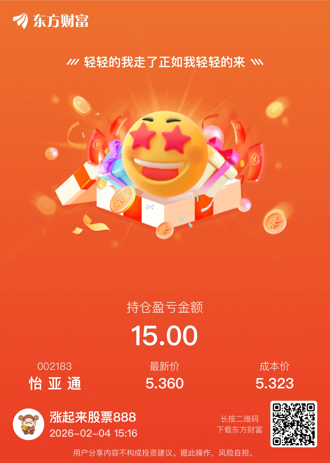 $怡 亚 通(SZ002183)$ 刚建仓就涨了