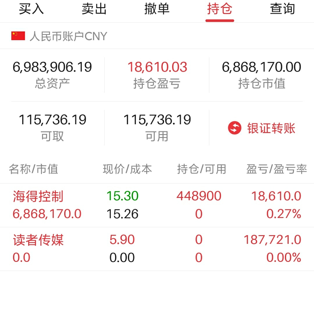 $海得控制(SZ002184)$ 刚刚15.21已经补仓加到满仓了!我不信此股还会下跌!目前已经满仓!等待后市大肉伺候!