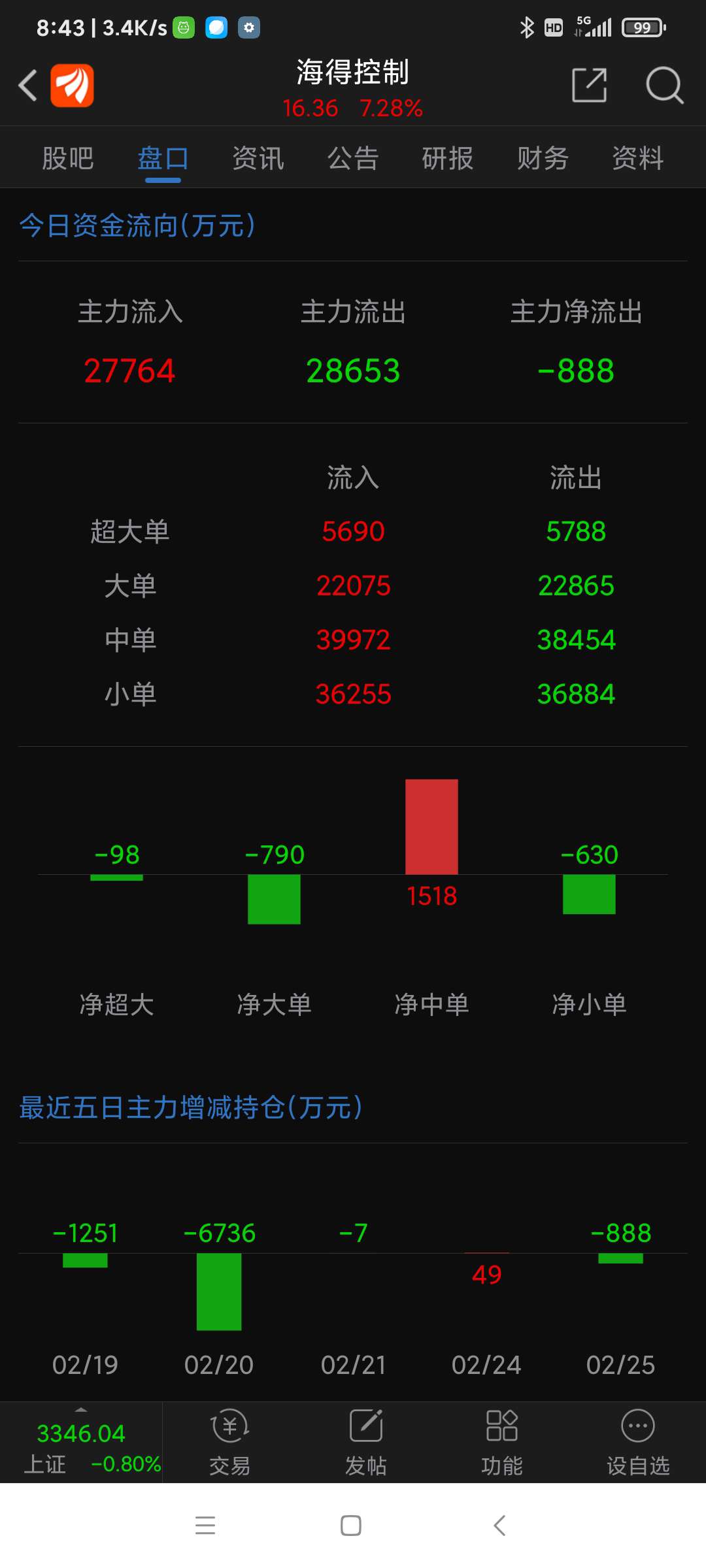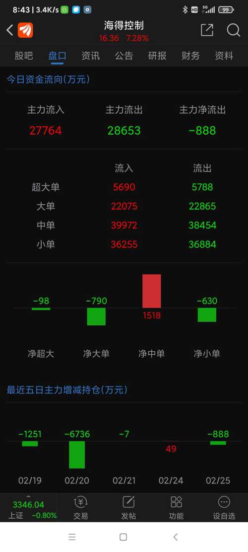 海得控制昨日(250225二)表现