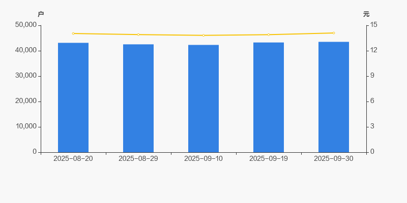 2025年8月20日至今,公司股东户数有所增长,区间涨幅为0.90%。2025年8月20日至2025年9月30日区间股价上涨0.43%。