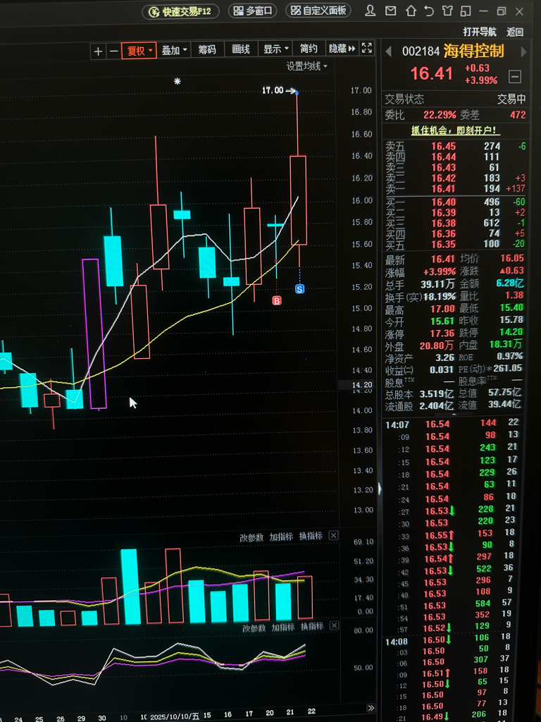 $海得控制(SZ002184)$ 一日游,感谢主力